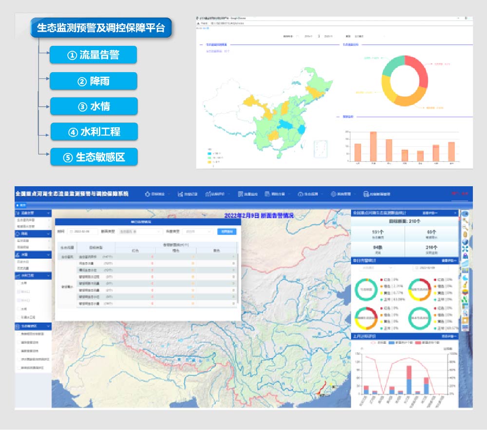 ? ? ? ?基于水利一張圖展示流域內所有生態流量控制斷面、告警狀況、日均水位/流量過程線等內容,通過目標制定、流量監控、分級預警、調控方案、生態監測、統計分析、斷面管理、系統管理等功能,為用戶查詢生態流量告警、歷史水位、流量、水利工程和生態敏感區等數據表信息。為生態文明建設提供科學、準確地決策支持。