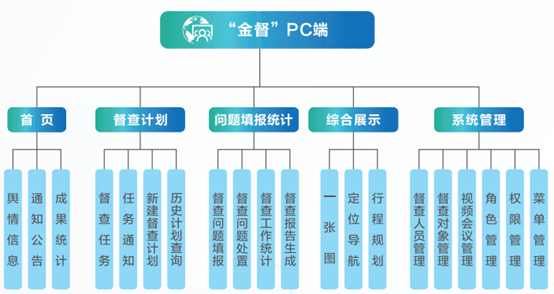 實現督查計劃制定、督查任務下發、督查信息錄入、問題處置、問題統計、各類統計報表導出、報告自動生成、一張圖綜合查詢展示、系統管理等功能。
