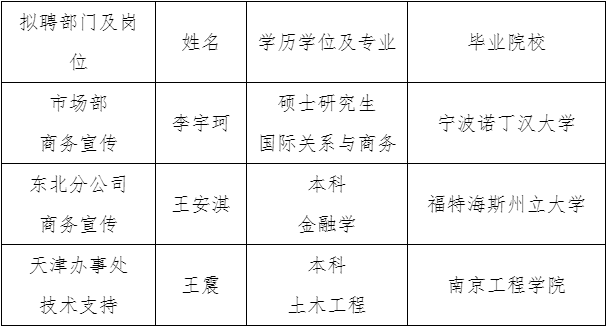 根據(jù)水利部關(guān)于部屬國有企業(yè)公開招聘工作有關(guān)規(guī)定,現(xiàn)將我單位近期擬聘人員予以公示。公示期間,如有問題,請向我單位反映。